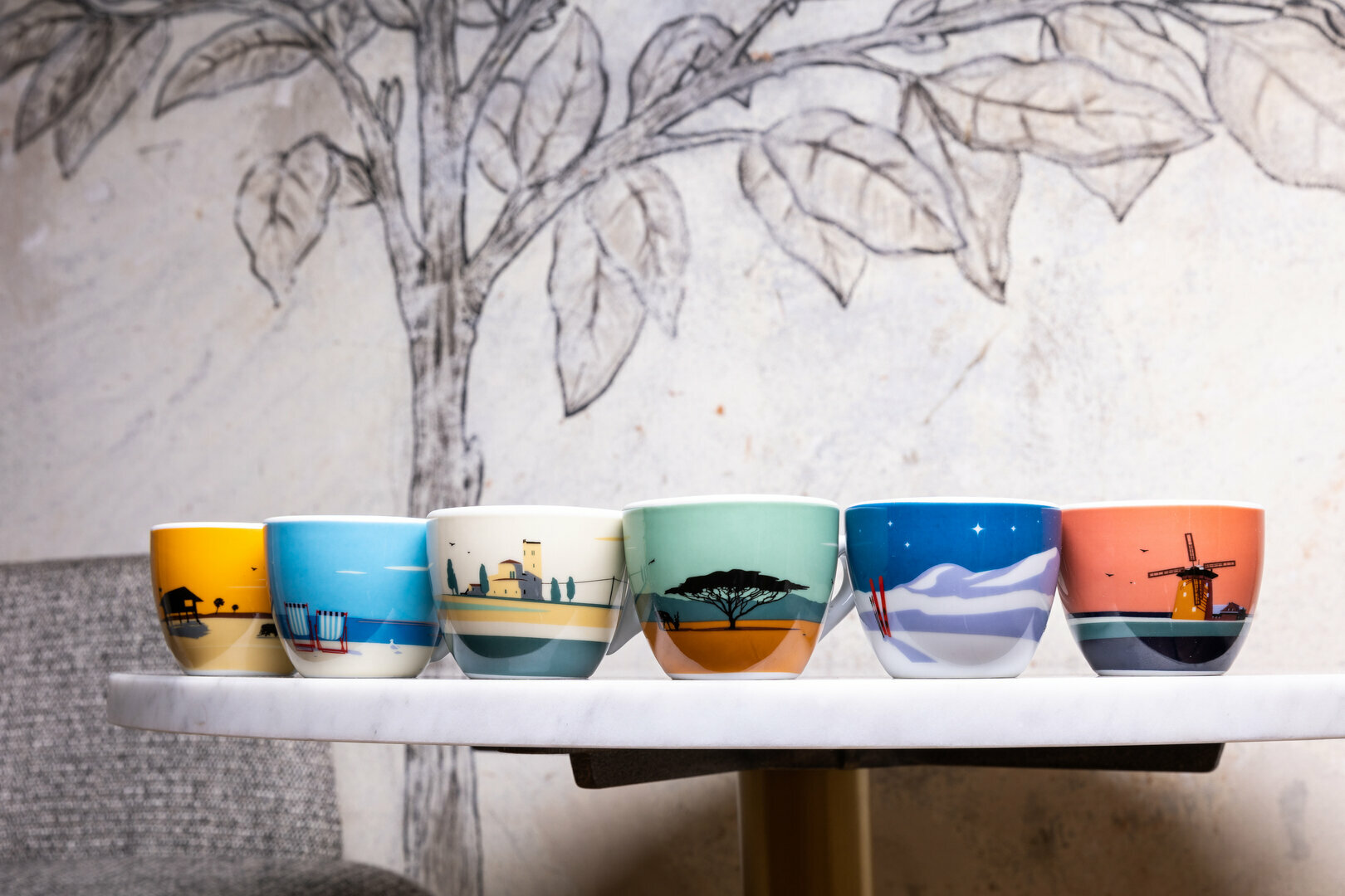 Dickwandige Kaffeetassen mit Untertassen der ROSA PAINTING-Serie in einer Serie von sechs gemalten Gemälden. Die einzigartige Sammlung wurde von der italienischen Künstlerin Stefania Buccio Gonzato geschaffen.