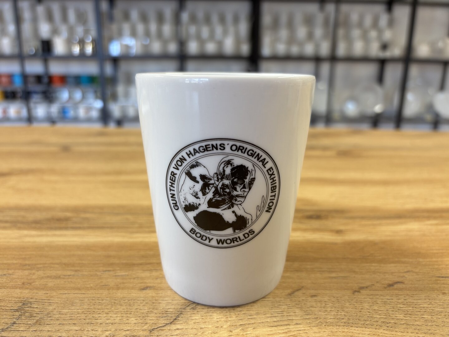 Porcelánový pohárek z bílého jemného porcelánu. Pohárky dodáváme ve špičkové kvalitě zpracování s jemně zabroušenými spodními hranami a absencí miniaturních vad. Porcelánové pohárky obrandujeme Vaším logem některou z našich technologií výroby.