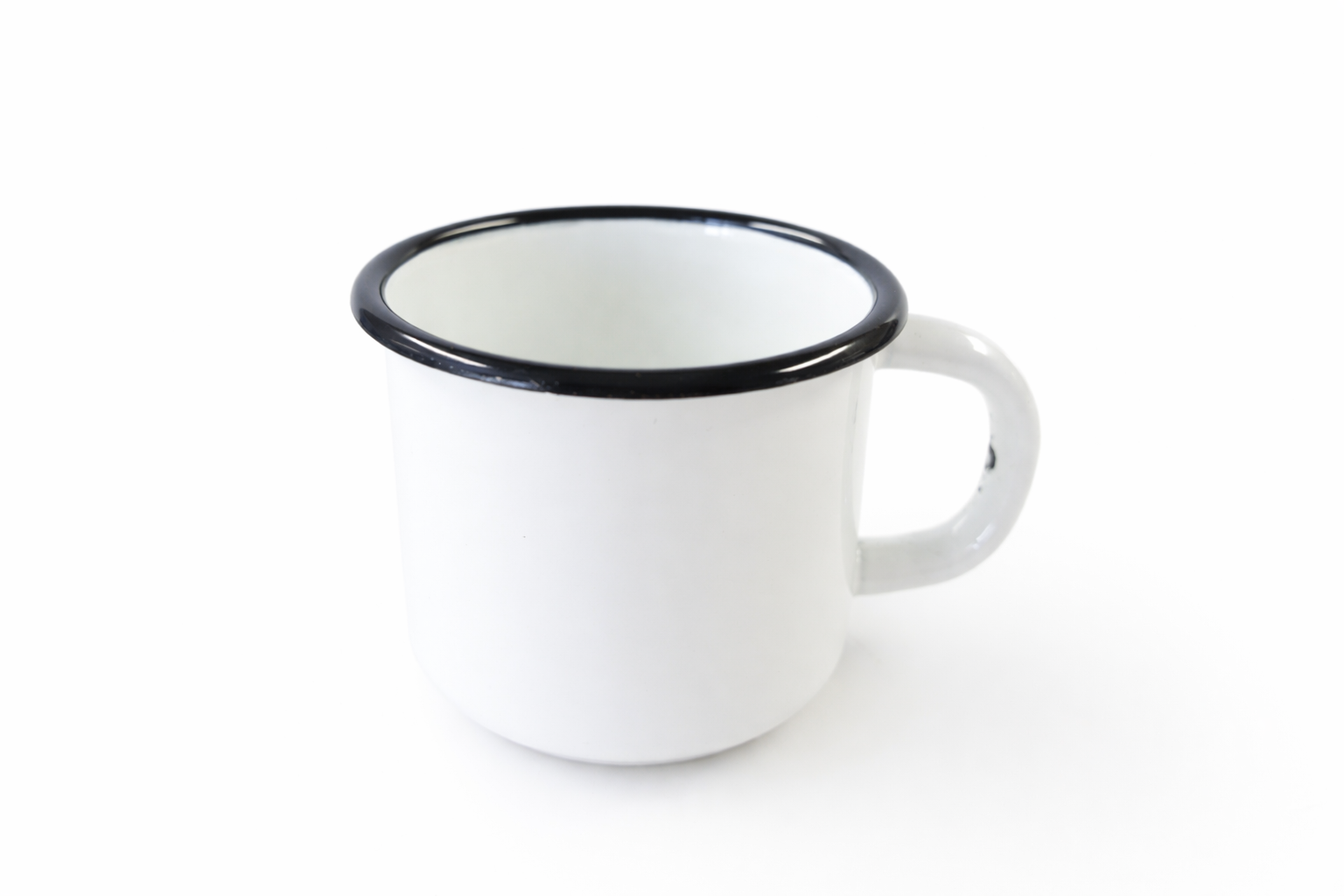 Bílý plechový hrnek 250 ml černý lem (NOVÝ TVAR 2026)