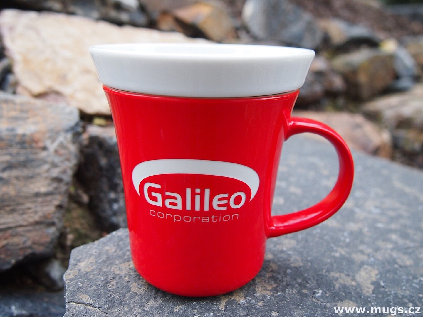 Hrnek z porcelánu se šikovným víčkem. Porcelánové víčko slouží zároveň jako podšálek a odkládací místo. Hrnek je ideální na originální a zajímavou dekoraci. Zajímavá je kombinace barevně naglazurovaného hrnku s čistě bílým víčkem. Na víčko můžeme natisknout a vypálit slogan, informace o Vaší firmě, webové stránky atd.